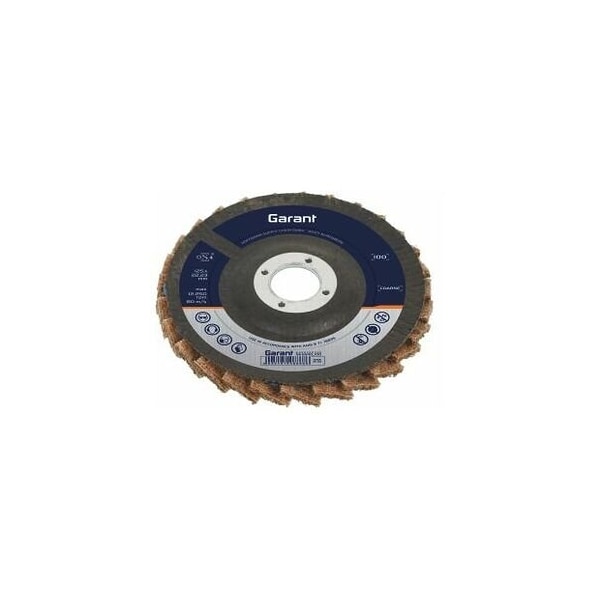Fleece flap discs with flaps of abrasive fleece on a glass Fiber pad. Application: For final finishing of surfaces. For removal of coloration, cleaning, and minor tidying up of weld seams. For fine grinding of large areas and for finishing. Recommended speed 4600 5300 rpm. maximum circumferential speed: 80 m/s Shape description: dished Bore : 22.23 mm Grit designation: coarse color: brown