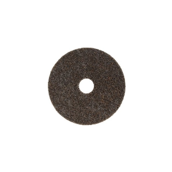 Fleece Velour-backed abrasive disc, Diameter: 125 mm, Grit equivalent: 100. Version: Fleece velour-backed abrasive discs with through-stitched backing for hook and loop fastener. With removable center for more precise positioning and attachment of the disc to the backing pad. For finishing- matting- smoothing with significant reduction in roughness- and for light cleaning such as removal of discoloration and deburring tasks. maximum circumferential speed: 40 m/s Grit designation: coarse A coarse Color: brown