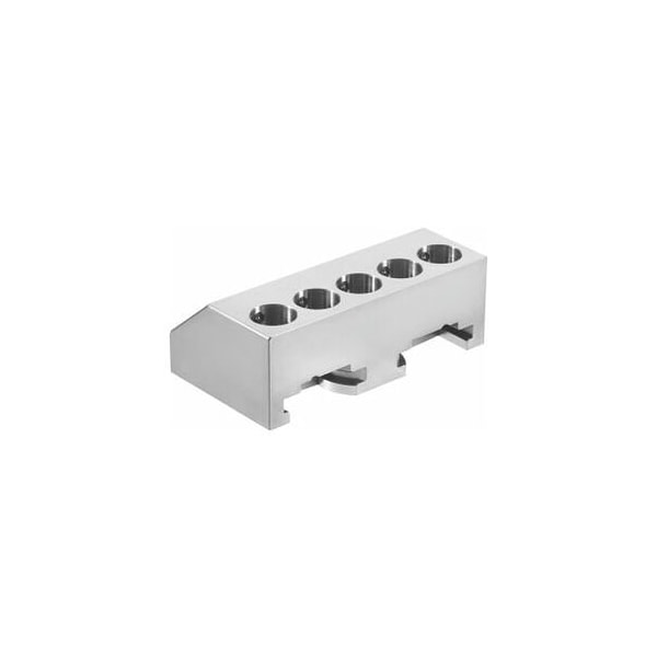 Application: For mounting grip inserts No. 361160 7 and 361238 - 361250. For compensation of non-parallel clamping faces. Gripp inserts can be screwed into a variety of hole patterns, for secure clamping of various geometries. Suitable for: 5-axis vice set No. 361100 and clamping module No. 361105 361110. Supplied with: Fastening screws. Note: Mounting recommendation on fixed clamping module. Matching counter jaw No. 361128. Jaw width b: 100 mm Jaw height h: 35 mm Jaw length l: 70 mm Length l1: 33 mm Swing angle: 30 degrees suitable for color code: Xpent0