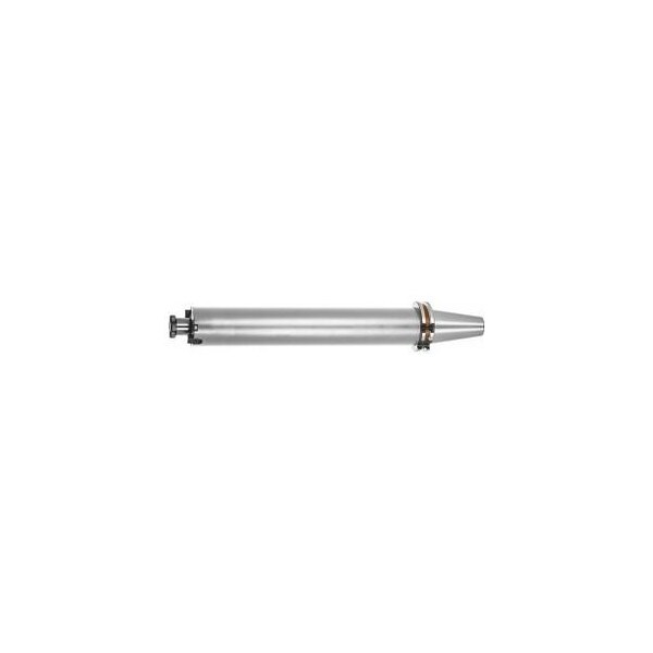 Taper shank, spigot, and all contact surfaces are ground at the collar. With RFID / Balluffchip bore. Larger collar contact face. Advantage: The heavy metal core specially matched to the Arbors gives optimum machining results even with long overhangs: Saves time, because allows use of the maximum machining parameters. Smooth running and thus perfect surface quality results. Saves costs, because tool life is increased. Less vibrational stress on the machine headstock. Supplied with: Cutter lock screw and drive dog. Note: Balance quality G 6.3 dependent on the maximum operating speed. Further sizes on request. Overhang dimension A: 300 mm External Dia D: 48 mm Milling mandrel length L4: 19 mm maximum speed nmax: 3500 min-1