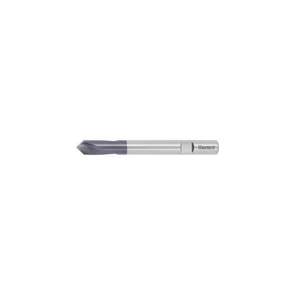 Dia. 6 mm with drive flat to DIN 1835-B. Precision centered ground point with thin chisel edge gives easy spot drilling and high accuracy of the center hole form. Very sturdy due to short flutes. High-performance NC spotting drill. Tool substrate made of sintered powder metallurgy for applications demanding high standards of tool life and accurate centering. Very good wear resistance in stainless steels. Note: Use speed for the actual hole Dia. not necessarily the speed for the drill outer Dia..