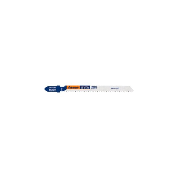 Jigsaw Blades for Wood, 5 Pc, Designation: T101BR. Version: Jigsaw blades with ground sharp teeth for precise sawing in wood. For mounting on a single-cam shank. Reverse tooth profile permits smooth sawing on the upper face. Supplied with: 5 pieces optimized for material: Wood Worktop thickness wood coated: 3-30 mm Type of cutting: straight cutting fine Type of cutting: Smooth cut one direction Saw blade material: HCS Tooth pitch: 2.5 mm Blade length: 100 mm Number of blades: 5