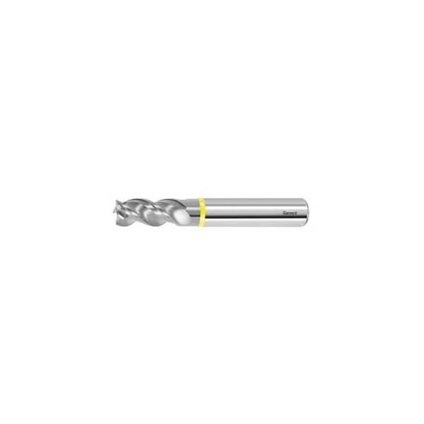 For roughing and finishing. Up to 2 x D into solid material at very high feed rates and smooth cutting action. Very high feed rates when plunging vertically. Ramping capability up to 45 Deg. Advantage: optimized flute form, eccentric relief ground, generous chip spaces. Tolerance nominal Dia. e8 No. of teeth Z: 3 Helix angle: 42 degrees Direction of infeed: horizontal, oblique and vertical Shank: DIN 6535 HA to h6 Balance quality with shank: G 2.5 with HA No. of teeth Z: 3 Flute length Lc: 13 mm Overhang length L1 incl. recess: 19 mm Recess Dia. D1: 5.8 mm Overall length L: 57 mm Shank Dia. Ds: 6 mm
