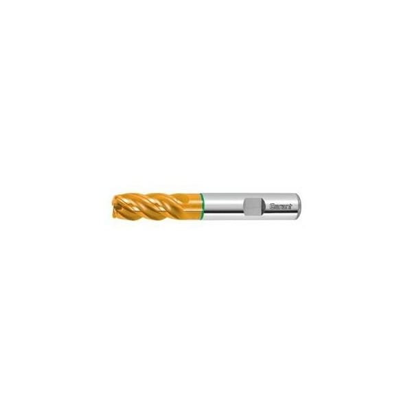For roughing and finishing at very high feed rates with smooth cutting action. Newly developed geometry and high-performance coating for outstanding production results and very long tool life with a variety of materials. Unequal spacing gives high intrinsic stability and smooth cutting action. Tolerance: corner radius R1 = ±0.005 mm. Dimensions similar to DIN 6527. Advantage: Particularly low vibration running. Special flute profile, large flutes. Specially matched edge honing. optimized substrate for hardness and toughness. No. of teeth Z: 4 Helix angle: 42 degrees Shank: DIN 6535 HB to h6 No. of teeth Z: 4 Flute length Lc: 13 mm Corner radius R1: 0.5 mm Overhang length L1 incl. recess: 19 mm Recess Dia. D1: 4.8 mm Overall length L: 57 mm