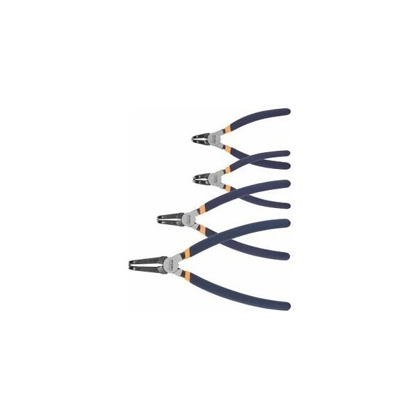 Forged grip and joint, precision made tips of special steel, special precision profile, pressed into the body. Pliers black, head ground, plastic coated handles. Joint with integral opening spring. Advantage: Pressed-in tips are highly durable even during continuous operation. Up to 10 times the working life of turned tips. Standard: DIN 5254 B fr Auensicherungsringe. Supplied with: 1 each circlip pliers No. 719870 size A01, A11, A21, A31. Use of circlip pliers: Outer ring, angled for external circlip : 3 10, 10 25, 19 60, 40 100 mm Tip : 0-9, 1-25, 1-8, 2-25 mm maximum overall length: 130, 130, 175, 220 mm