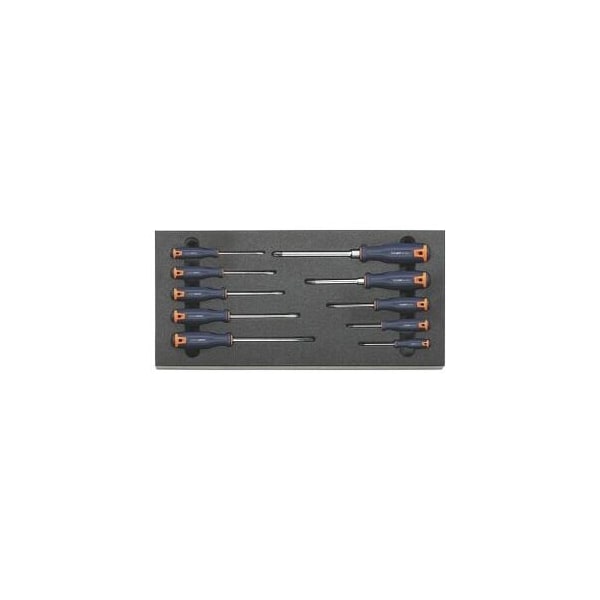 Set of 10 Phillips and Slotted Screwdrivers Set in Foam