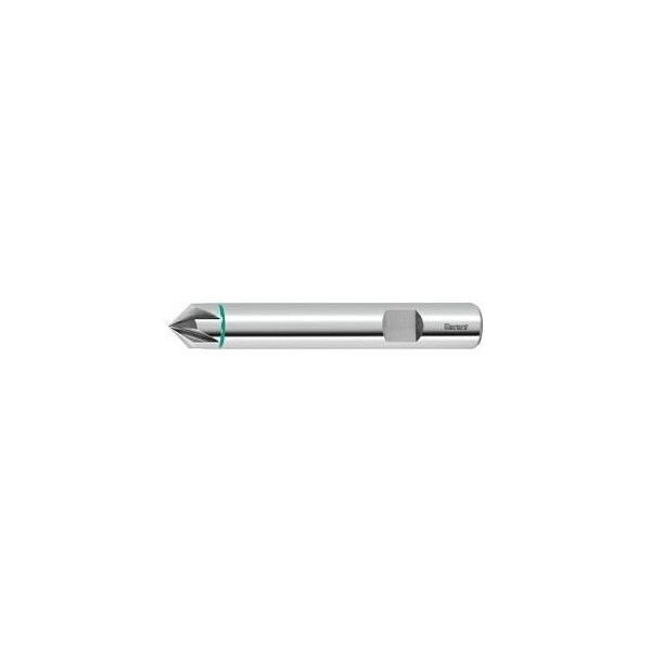 With special flute geometry, smooth cutting. Tolerance: Dimension S = ± 0.2 mm. Application: Perfectly suitable for chamfering and deburring component edges and for contouring applications. No. of teeth Z: 6 Shank: DIN 6535 HB to h6 Chamfer mill: 45 degrees No. of teeth Z: 6 Dimension S: 5.6 mm Overall length L: 63 mm Shank Dia. Ds: 8 mm Feed fz in steel < 900 N/mm2: 0.04 mm
