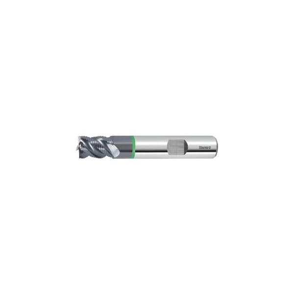 Dimensions similar to DIN 6527. optimized special knuckle profile for roughing. Very high rate of metal removal. Can be used as a universal end mill. Application: Especially for MTC Multi Task Cutting use on the new generation of turning / milling Centers. Tolerance nominal Dia. d11 No. of teeth Z: 5 Helix angle: 45 degrees Direction of infeed: horizontal, oblique and vertical Shank: DIN 6535 HB to h6 No. of teeth Z: 5 Flute length Lc: 19 mm Overall length L: 83 mm Shank Dia. Ds: 16 mm Corner chamfer width at 45 Deg: 0.35 mm Feed fz for slot milling in steel < 900 N/mm2: 0.08 mm