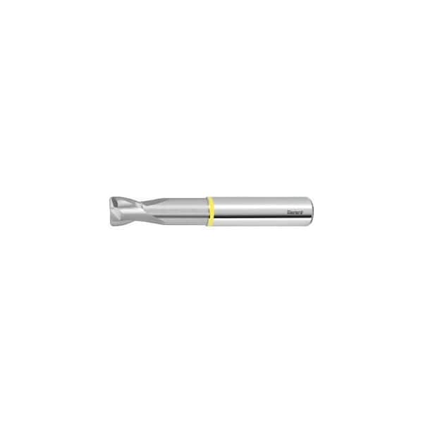 With double relief ground side clearance angle and corner radius. High strength due to strengthened core. Tolerance: R1 = ±0.01 mm. No. of teeth Z: 2 Helix angle: 30 degrees Shank: DIN 6535 HA to h6 No. of teeth Z: 2 Flute length Lc: 11 mm Corner radius R1: 1.5 mm Overhang length L1 incl. recess: 32 mm Recess Dia. D1: 9.2 mm Overall length L: 72 mm