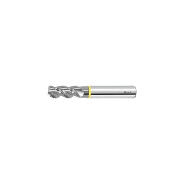 Eccentric relief ground, additionally polish ground in the flutes for outstanding chip evacuation in long-chipping aluminium workpieces. Tolerances: Corner radiusR1 = 0.5 tolerance ±0.02. R1 > 0.5 1.5 tolerance ±0.03. R1 > 1.5 tolerance ±0.05. No. of teeth Z: 3 Helix angle: 45 degrees Shank: DIN 6535 HA to h6 Balance quality with shank: G 2.5 with HA No. of teeth Z: 3 Flute length Lc: 13 mm Corner radius R1: 0.5 mm Overhang length L1 incl. recess: 19 mm Recess Dia. D1: 5.7 mm Overall length L: 57 mm
