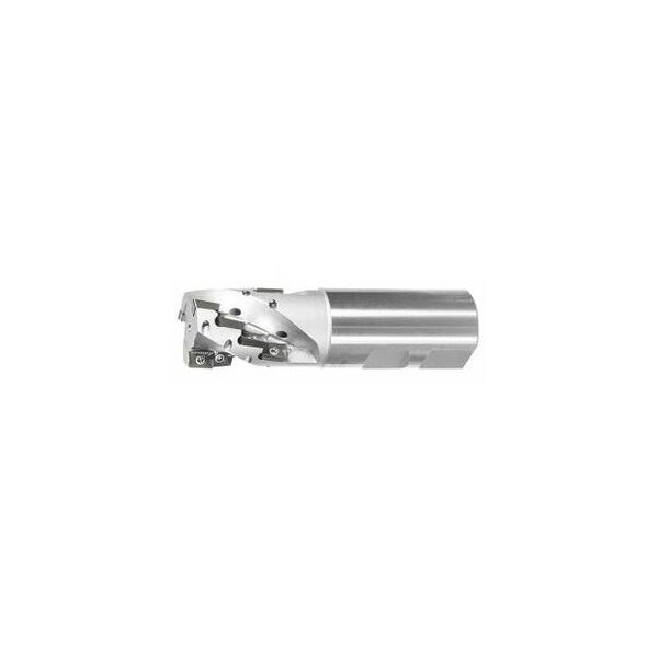 Version: Very high metal removal rate- as 2 or 3 cutting edges are in action during each rotation. Application: For peripheral milling and side milling. Note: Not for ramping or circular plunging! Use GARANT torque screwdriver TQ No. 211750 size 1.2 with bit No. 674252 size 8IP. Tool exchange: PowerCard Number of effective inserts Zeff: 3 Number of indexable inserts: 12 maximum cutting depth ap max: 38 mm Overhang L1: 54 mm Overall length Ltot: 114 mm ShankDs h6: 32 mm