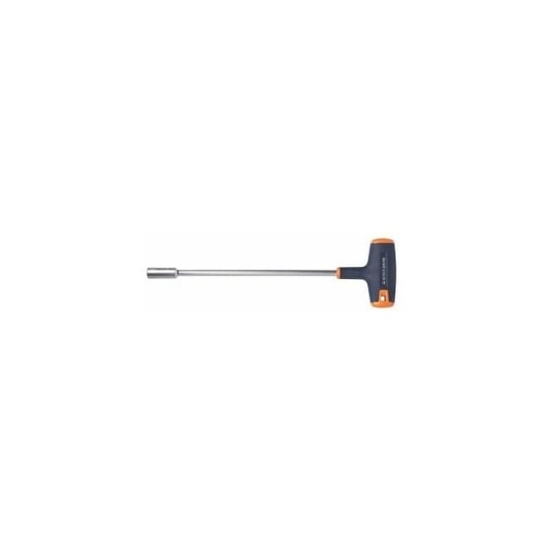 Cleanly formed, deep hexagon spinner head. Ergonomically shaped T-handle with easy-grip Haptoprene surface and an impact-resistant plastic core. Blade of chrome vanadium steel. Surface nickel-plated and chrome-plated. overall length: 262 mm
