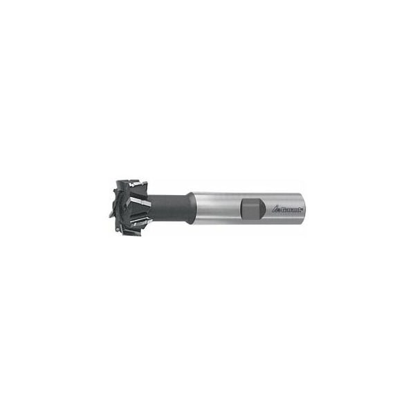 Cuts on all three sides. Alternate set teeth with ground chip breaker on flutes. Note: For milling T-slots to DIN 650.