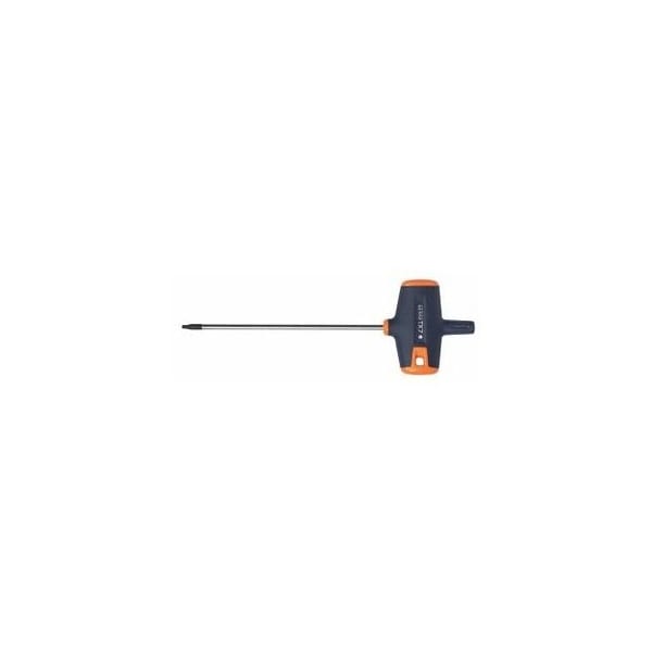 Ergonomically shaped T-handle with easy-grip Haptoprene surface and an impact-resistant plastic core. Blade of chrome vanadium steel. Surface nickel-plated and chrome-plated, black tip. Size TX20 TX40 with side drive. Material: Chromium vanadium steel Blade length: 100 mm overall length: 146 mm