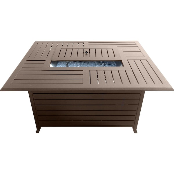 Rectangular Slatted Aluminum Firepit, Hammered Bronze - 22.5 x 49.5 x 37.5 in.