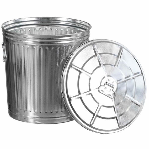 12 gal Round Outdoor Can, Silver, Galvanized Steel, 16 in