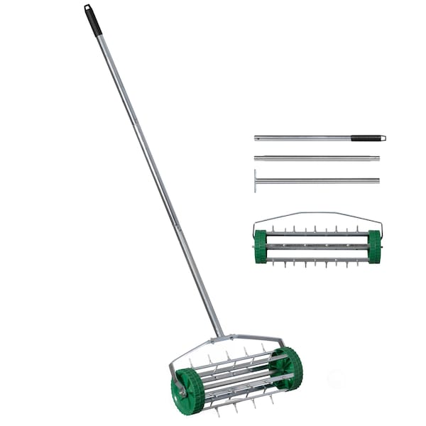Durable Rolling Spike Lawn Aerator w/Sturdy Steel Handle and Sharp Metal Tines