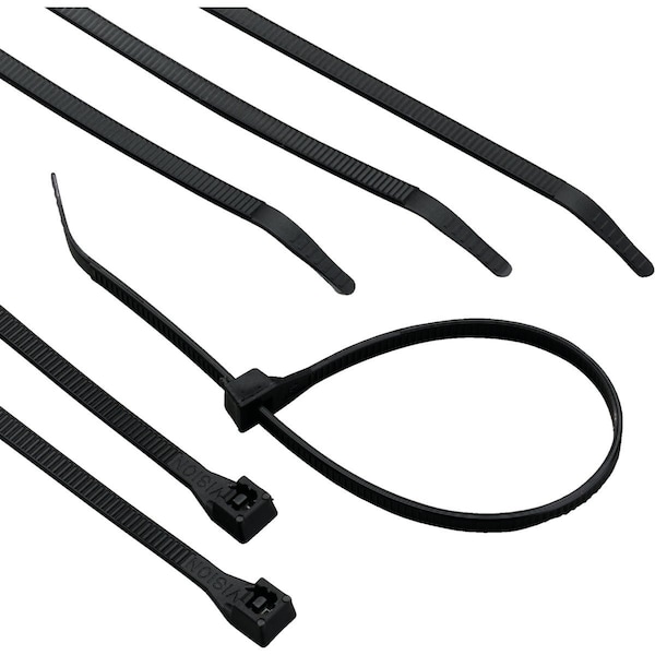 Ultraviolet and weather-resistant black nylon cable tie. Resists harmful light rays from the sun. Bent tip ensures easy insertion into the tie head. Easy slip during pull-through due to smooth radiused edges. Finger grips on end provides secure grip to tighten. Serviceable from 32 Deg (degrees) F (Fahrenheit) through 185 Deg F.