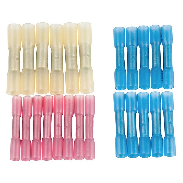 Butt Splice Wire Connector, 10 AWG Max, Blue, Red, Yellow, 24 PK