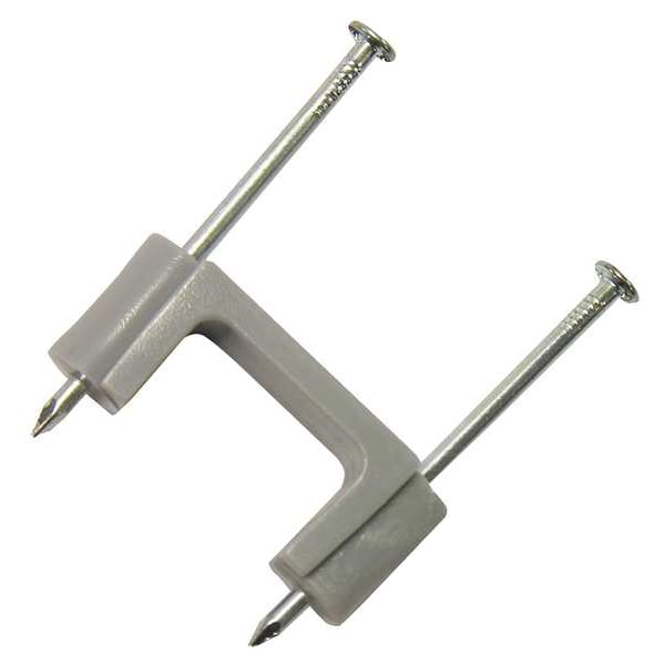 Cable Staple,Gray,0.75 in,PK5, Size 3/4 in, Material Plastic, Steel, Finish Zinc Plated, Product Type Cable Staple, For Wire/Cable Type Service Entrance Cable, Pack Size Small Pack, Color Gray, Compatible Material Wood, Properties Corrosion Resistant, Rust Resistant, Manufacturer Location Made in USA*, Package Quantity 5