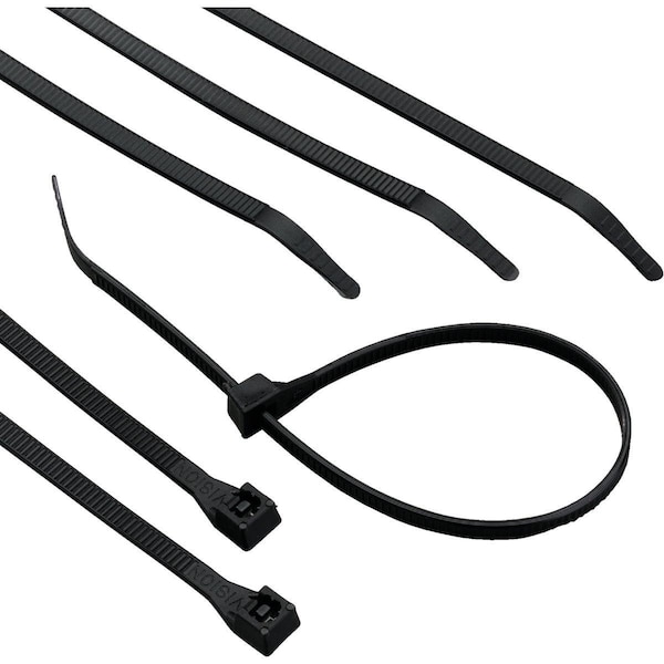 Cable Tie, 14 in L, 4 in Max Bundle Dia., Black, Nylon 6/6, 75 lb Strength, 8 PK