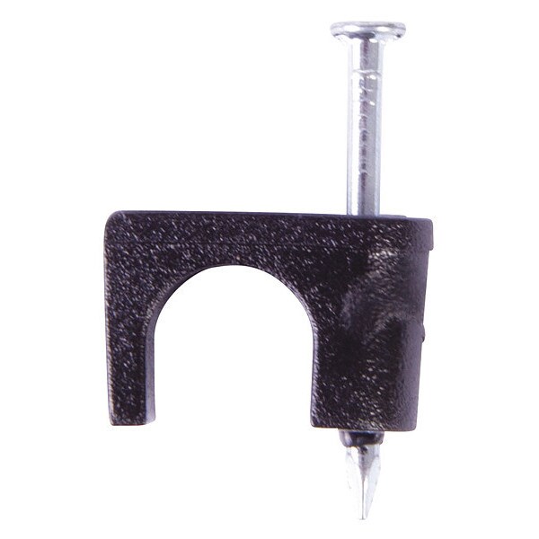 UV-resistant polyethylene cable staple with corrosion-resistant zinc-plated nail for fast, secure wood installation
