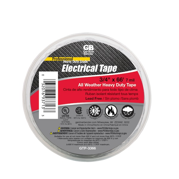 Electrical Tape, 3/4 in. x 66 Ft, Heavy