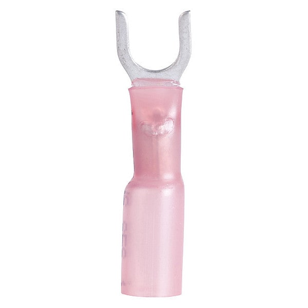 Fork Terminal, #8 Stud Size, 18 AWG, Heat Shrink Insulated, Red, 3 PK