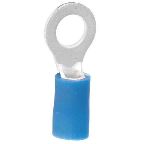 Ring Terminal, #8 to #10 Stud Size, 14 AWG, 600 V, Vinyl Insulated, Blue, 100 PK