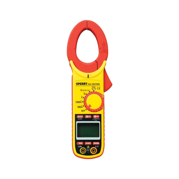 Engineered to exceed the expectations of the professional electrician the DSA1020TRMS is a 10 functional 27 range digital snap-around clamp meter with precise true RMS circuitry and a 1000 AMP non-contact current reading. Designed with integrated non-contact voltage detection and a min/max data hold capable function which allows you to hold either minimum reading or maximum reading on the display. This auto ranging unit features 10 functions and 27 ranges measuring AC/DC V up to 600 V, non-contact AC voltage 80-600V and AC/DC current up to 1000A. Able to test continuity, resistance, true RMS, frequency, and temperature (probe type) this unit features a backlit LCD display ideal for low light applications and an auto power of functionality to save battery life. Unit ships with a convenient carrying case and 2 AAA batteries (required for use).
