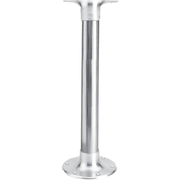 Provides salon areas and pontoon decks with removable dinette tables; Engineered for marine use; 3 piece, all-aluminum provides solid table base; Fluted profile stanchion with protective anodized finish; Quick stowage; Tapered on both ends for a snug/no wobble fit