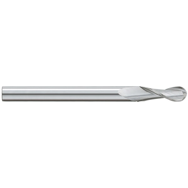 Ball End Mill, Center Cutting Extra Length Single End, Series: 740M, 3 mm Diameter Cutter, 50 mm Overall Length, 16 mm Length of Cut, 2 Flutes, Spiral Flute, 3 mm Shank Diameter, Right Hand Cutting Direction, 30 deg Helix Angle, Solid Submicron Grain Carbide, Uncoated
