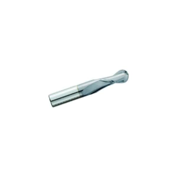 Ball End Mill, Center Cutting Single End Standard Length, Series: 320MC, 17/64 in Diameter Cutter, 2-1/2 in Overall Length, 7/8 in Length of Cut, 2 Flutes, Spiral Flute, 5/16 in Shank Diameter, Right Hand Cutting Direction, 30 deg Helix Angle, Solid Submicron Grain Carbide, TiCN Coated