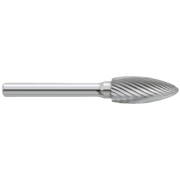 Burr, Series: SH, 1/2 in Diameter Head, Flame Head Shape, Double Cut, 1/4 in Shank Diameter, 1-3/4 in Shank Length, Submicron Grain Carbide Head, Industry Specification: SH-5D