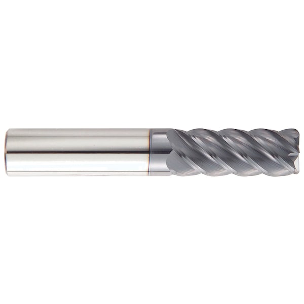 Corner Radius End Mill, Center Cutting High Performance, Series: 255RA, 3/8 in Diameter Cutter, 0.03 in Corner Radius, 3 in Overall Length, 1-1/4 in Length of Cut, 5 Flutes, 3/8 in Shank Diameter, 45 deg Helix Angle, Solid Submicron Grain Carbide, AlTiN Coated