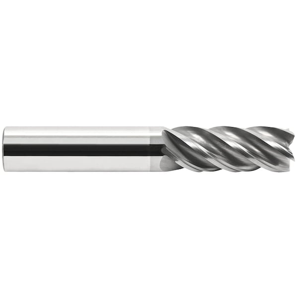 Corner Radius End Mill, Center Cutting High Performance Variable Helix, Series: V5, 1 in Cutter Dia, 0.03 in Corner Radius, 6 in Overall Length, 1-1/4 in Length of Cut, 5 Flutes, Spiral Flute, 1 in Shank Dia, Right Hand Cutting, Plain Shank, Solid Submicron Grain Carbide, AlCrN Coated