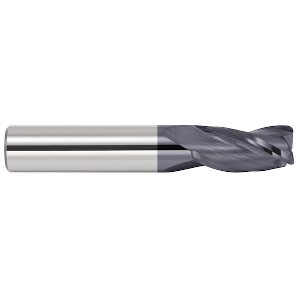 Corner Radius End Mill, Center Cutting Standard Length, Series: 223RA, 3/8 in Diameter Cutter, 0.03 in Corner Radius, 2-1/2 in Overall Length, 7/8 in Length of Cut, 3 Flutes, 3/8 in Shank Diameter, 30 deg Helix Angle, Solid Submicron Grain Carbide, TiAlN Coated