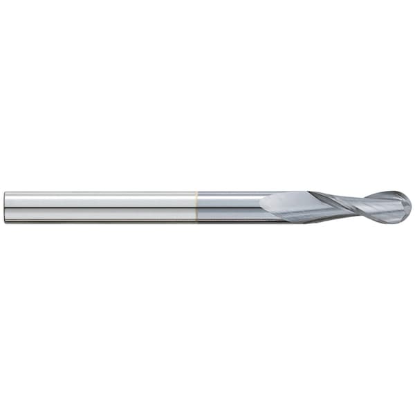End Mill, Ball End Center Cutting Extra Length, Series: 720MC, 3/8 in Diameter Cutter, 4 in Overall Length, 1 in Length of Cut, 2 Flutes, Spiral Flute, 3/8 in Shank Diameter, Right Hand Cutting Direction, 30 deg Helix Angle, 3 in Shank Length, Solid Submicron Carbide, TiCN Coated