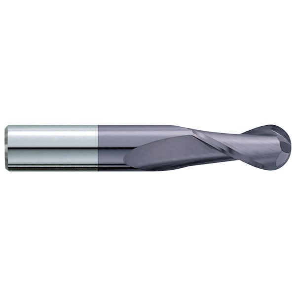 End Mill, Ball End Center Cutting Single End Stub Length, Series: 180MA, 1/32 in Diameter Cutter, 1-1/2 in Overall Length, 1/16 in Length of Cut, 2 Flutes, Spiral Flute, 1/8 in Shank Diameter, Right Hand Cutting Direction, 30 deg Helix Angle, Plain/Round Shank, 1-7/16 in Shank Length, Solid Submicron Carbide, TiALN Coated