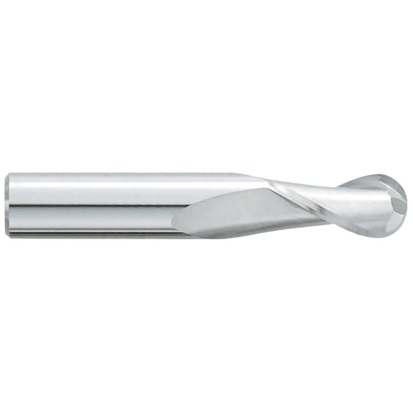 End Mill, Ball Nose Center Cutting, Series: 380M, 7/16 in Diameter Cutter, 2-3/4 in Overall Length, 1 in Length of Cut, 2 Flutes, Helix Flute, 7/16 in Shank Diameter, Right Hand Cutting Direction, 30 deg Helix Angle, Weldon Flat Shank, Submicron Solid Carbide
