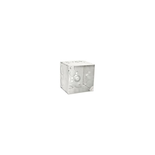 4 x 4 x 3-1/2, Zinc Plated, Steel, 4 1/2 to 3/4, 2 3/4, 2 1 Side/2 1/2 and 2 3/4 Bottom Knockout, Welded, Square, Junction Box