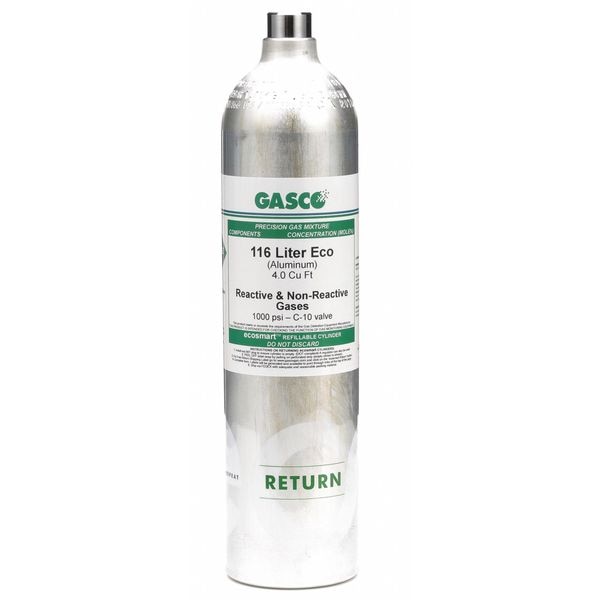 Calibration Gas, CGA Number Not Applicable, Container Type Cylinder, Cylinder Capacity 116 L, Cylinder Diameter 3.5 in, Cylinder Height 14.3 in, For Use With All OEM Gas Detectors, Gas Mixture Carbon Monoxide 250 ppm, Hydrogen Sulfide 40 ppm, Methane (50 Percent LEL) 2.5 Percent, Gas Type Carbon Monoxide, Hydrogen Sulfide, Methane, Nitrogen, Oxygen, Product Type Calibration Gas, Chemical Formula CH4, CO, H2S, N2, O2, CAS Number 630-08-0, 74-82-8, 7727-37-9, 7782-44-7, 7783-06-4