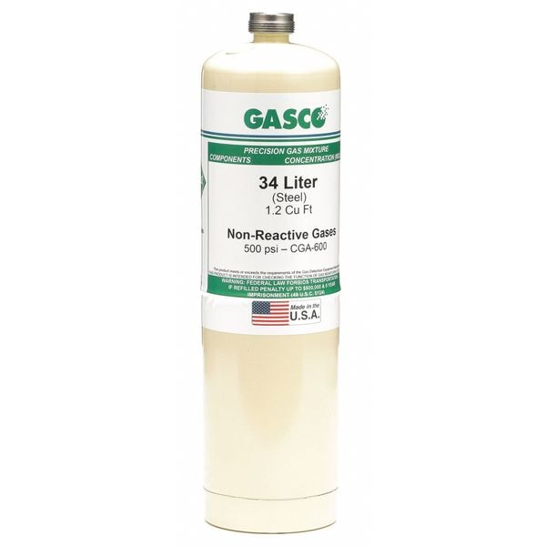 Calibration Gas, CGA Number CGA 600, Container Type Cylinder, Cylinder Capacity 34 L, Cylinder Diameter 2.9 in, Cylinder Height 10.75 in, For Use With All OEM Gas Detectors, Gas Mixture Nitrogen 99.999 Percent, Gas Type Nitrogen, Product Type Calibration Gas, Chemical Formula N2, CAS Number 7727-37-9, Accuracy +/-5 Percent, Background Gas Air, Calibration Certificate NIST, Cylinder Material Steel, Standards ISO 9001:2015, Reusability Disposable, Operating Pressure - Maximum 500 psi