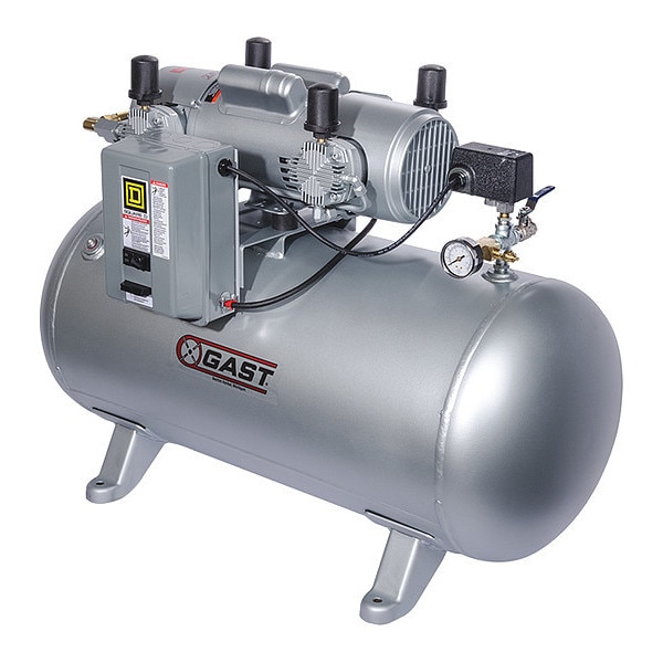 Piston Air Compressor, Lubrication Type Oilless, Number of Cylinders 4, Output Power 1.5 hp, Phase Single, Voltage 115/208 to 230V AC, Maximum Continuous Pressure 50 psi, Maximum Intermittent Pressure 50 psi, Maximum Vacuum Not Applicable, Free Air Flow Rate 10.2 cfm, Maximum Speed 1,725 RPM, Inlet Size 3/8 in, Inlet Type NPT, Inlet Gender Female, Outlet Size 3/8 in, Outlet Type NPT, Outlet Gender Female