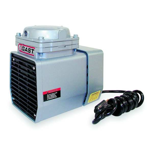 Compressor/Vacuum Pump, Output Power 1/8 hp, Voltage 115V AC, Maximum Vacuum 25.5 in Hg, Maximum Continuous Pressure 60 psi, Maximum Intermittent Pressure 60 psi, Maximum Flow Rate 0.55 cfm @ 30 psi, 1.1 cfm @ 0 psi, Inlet Size 1/4 in, Inlet Connection Type NPT, Outlet Size 1/4 in, Outlet Connection Type NPT, Compressor Type Diaphragm, Current Rating 4.2 A