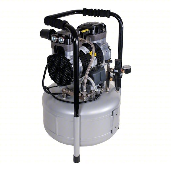 Item Electric Air Compressor, Enclosed Yes, Lubrication Type Oil Free, Output Power 3/4 hp, Free Air Flow Rate @ Maximum Pressure 1.8 cfm @ 60 Hz, Maximum Operating Pressure 116 psi, Air Tank Size 25 L, Input Voltage 120V AC, Sound Level 68 dBA, Air Dryer Included No Air Dryer