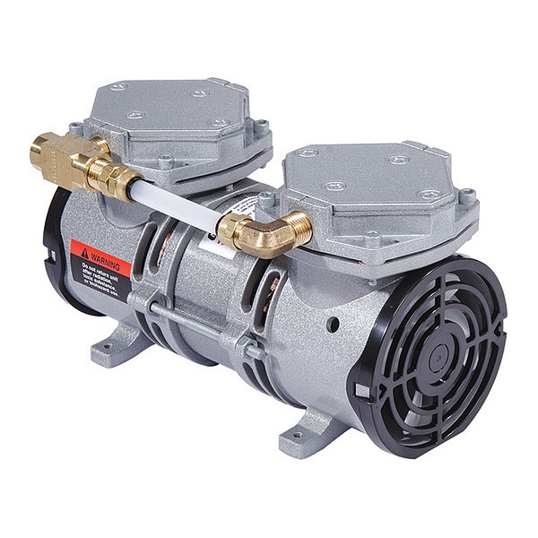 Compressor/Vacuum Pump, Output Power 1/16 hp, Voltage 110/115V AC, Maximum Vacuum 28.5 in Hg, Maximum Continuous Pressure 50 psi, Maximum Intermittent Pressure 50 psi, Maximum Flow Rate 0.4 cfm @ 0 psi, Inlet Size 1/4 in, Inlet Connection Type NPT, Outlet Size 1/4 in, Outlet Connection Type NPT, Compressor Type Diaphragm