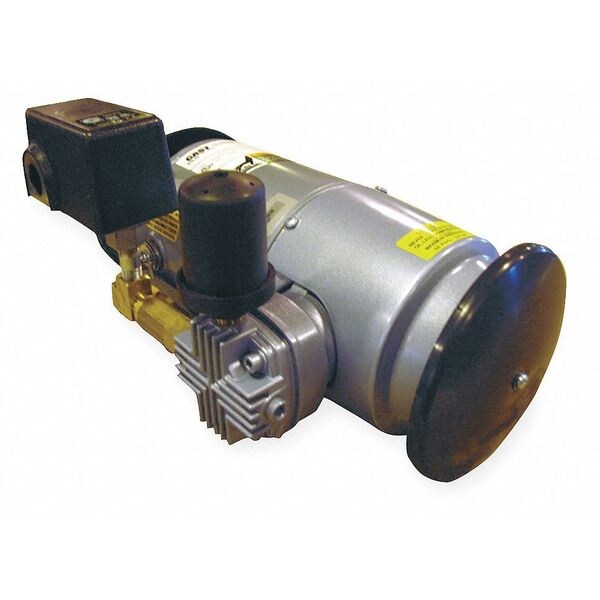 Piston Air Compressor, 1/4 HP, Voltage 115VAC, 60 Hz, 1 Phase, Full Load Amps 5.8, Inlet Size 1/4 In. NPT, Outlet Size 1/4 In. NPT, Max. PSI Cont./Int. 50/50, Free Air CFM @ 50 PSI 0, Overall Length 13-1/2 In., Overall Width 9-2/5 In., Overall Height 9-2/5 In., Cylinder Material Cast Iron, Number of Cylinders 1, Motor Type ODP, 1750 RPM, 75 dBA Sound Rating, Lubrication Type Oil-Less, Finish Gray Paint, Valve Stainless Steel, Standards UL 2125