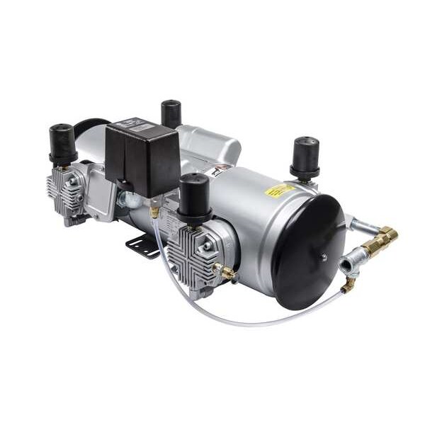 Tankless Piston Air Compressor, Number of Cylinders 2, Output Power 1.5 hp, Phase Single, Voltage 115V AC, 130-208V AC, Maximum Continuous Pressure 50 psi, Maximum Intermittent Pressure 50 psi, Maximum Vacuum Not Applicable, Free Air Flow Rate 10.5 cfm, Maximum Speed 1,725 RPM, Inlet Size 3/8 in, Inlet Type NPT, Outlet Size 1/4 in, Outlet Type NPT