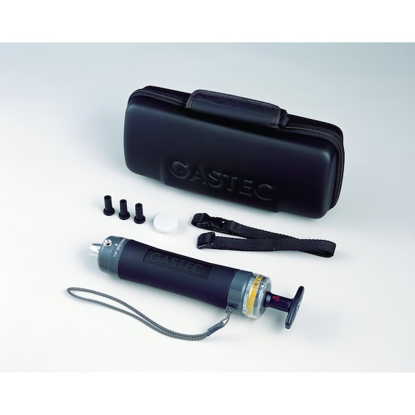 Gastec Gas Sampling Pump Complete Kit with automatic counter GV-110S includes the Gas sampling pump GV-110 with automatic stroke counter, pump accessories (3 rubber inlets and lubricant), as well as the instruction sheet are provided in a compact case with a shoulder strap. Gastec Gas sampling pump GV-110 can precisely collect a sample volume for Gastec Detector Tube. The full-stroke (100 mL) and the half stroke (5 mL) positions are marked exactly by the red line on the pump shaft, and the handle is precisely locked at the those positions. The automatic sampling counter tells you how many pump strokes you already completed. So there is no chance of miscounting.